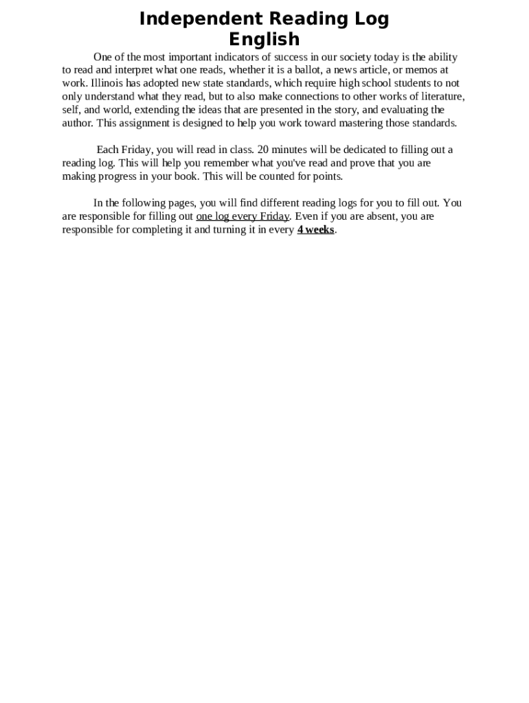 Instructions for the form Independent Reading Log Specific Tasks answers .docx - Name