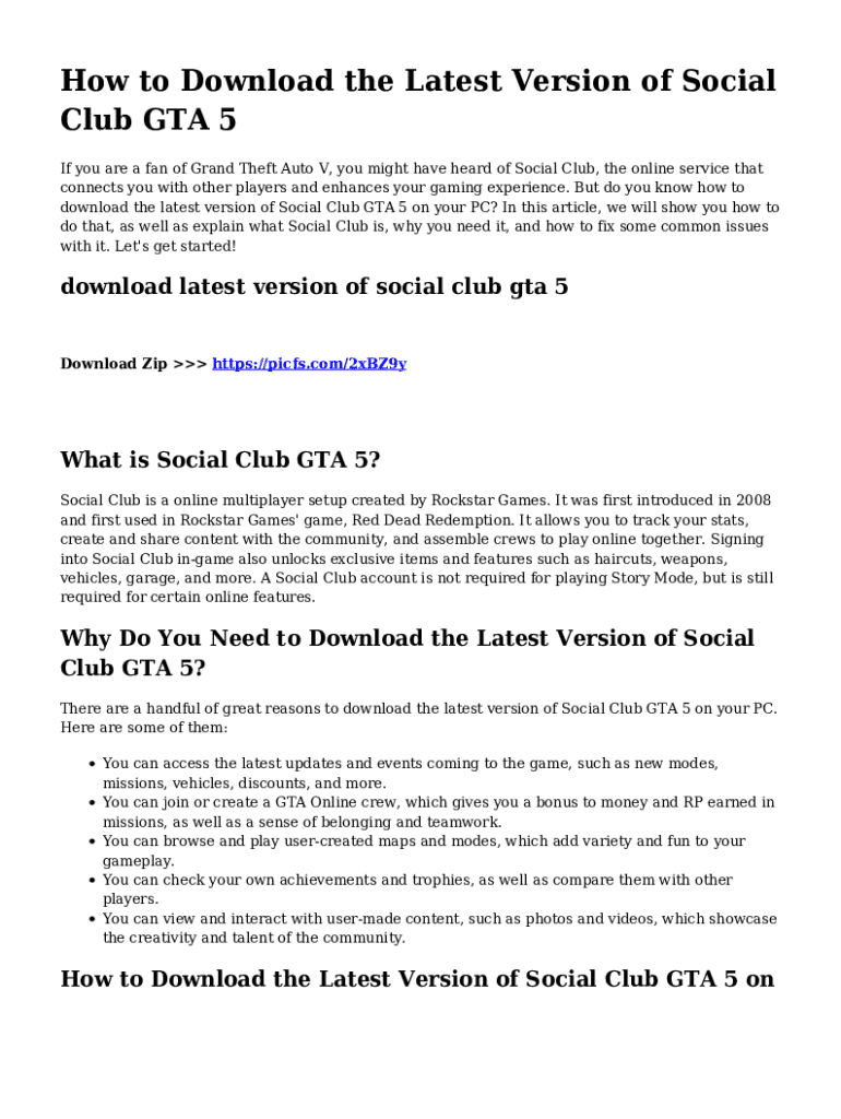 How to Download the Latest Version of Social Club GTA 5 If you are a fan of Grand Theft Auto V, you might have heard of Social Club, the online service that connects you with other players and enhances