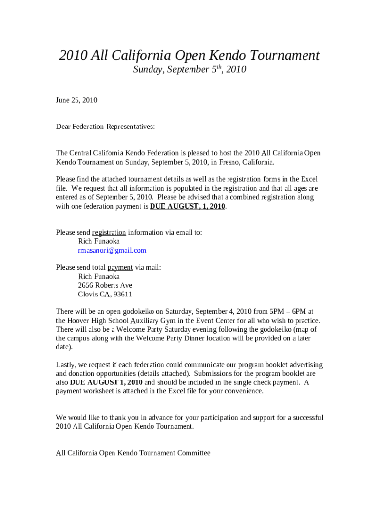 The Northern California Kendo Federation main page is a Word document that can be completed and signed for specific purpose. In that case, it is furnished to the exact addressee to provide certain info of any kinds. The completion and signing may be done in hard copy or via an appropriate solution like PDFfiller. These tools help to fill out any PDF or Word file without printing them out. It also lets you customize it for your needs and put a legal digital signature. Once finished, you send the Northern California Kendo Federation main page to the recipient or several ones by email and also fax. PDFfiller has got a feature and options that make your template printable. It has a variety of options for printing out. No matter, how you will deliver a form after filling it out - in hard copy or by email - it will always look neat and organized. To not to create a new editable template from the beginning again and again, make the original document into a template. After that, you will have a customizable sample.