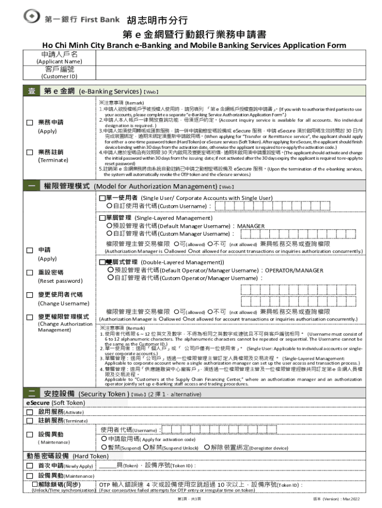 Ho Chi Minh City Branch eBanking and Mobile Banking Services Application Form(Applicant Name)(Customer ID) e (eBanking Services)Web