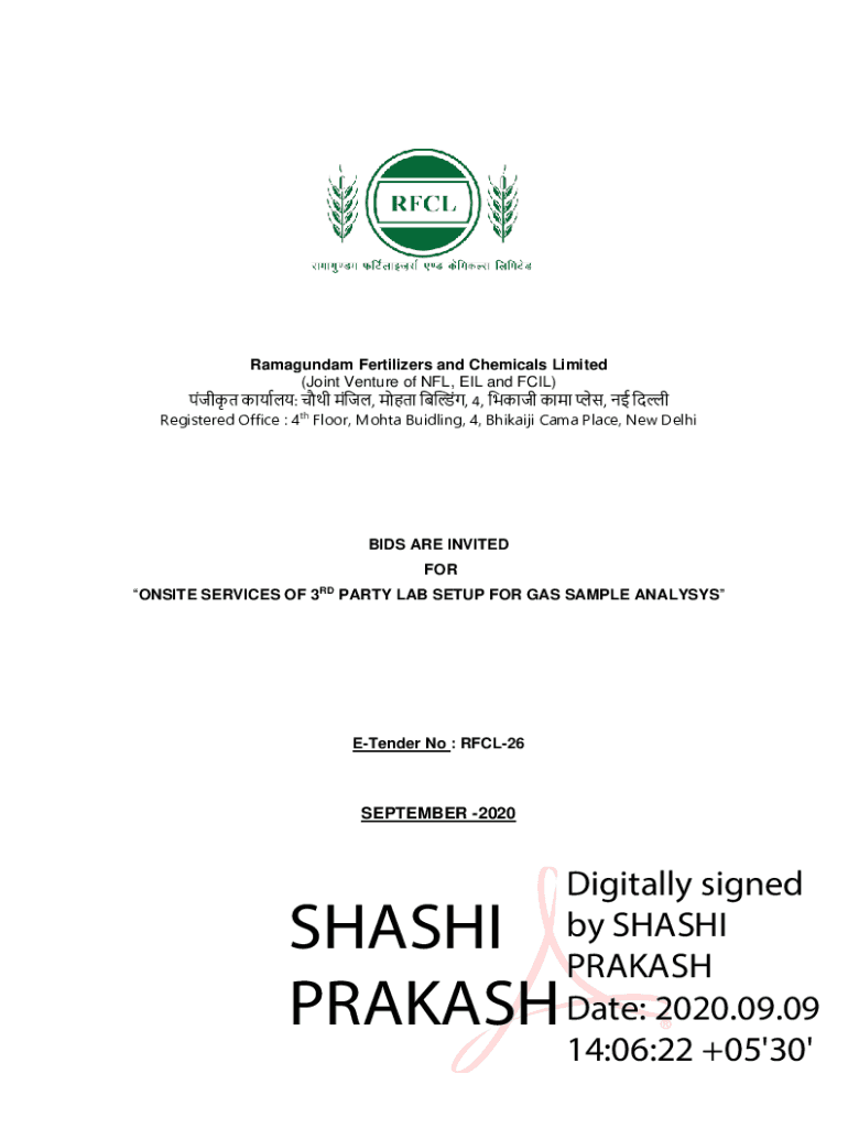 Ramagundam Fertilizers and Chemicals Limited (Joint Venture of NFL, EIL and FCIL) : , , 4, , Registered Office : 4th Floor, Mohta Buidling, 4, Bhikaiji Cama Place, New DelhiBIDS ARE INVITED FOR ONSITE