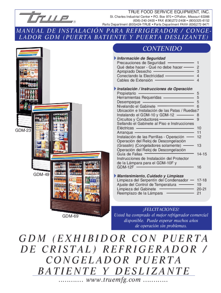 TRUE FOOD SERVICE EQUIPMENT, INC. St. Charles Industrial Center P.O. Box 970 OFallon, Missouri 63366 (636)2402400 FAX (636)2722408 (800)3256152 Parts Department (800)424TRUE Parts Department FAX#
