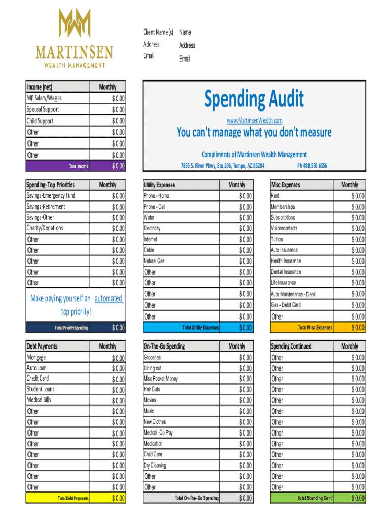 Get the free Spending Audit Worksheets.xlsx