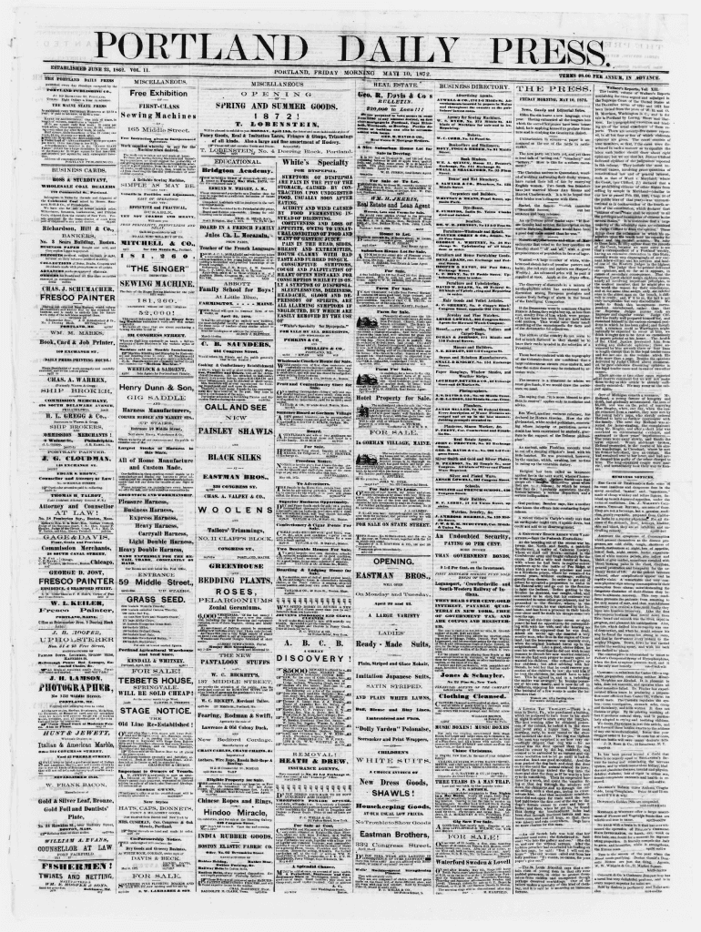 f *rxthe*PORTLANDDAILYPRESSMISCELLANEOUS.publinhod every day (Sundays excepted) by thePOKTI,A.ND Pl\'BLISHDTO CO.,Free ExhibitionAt 109Exchange St, Portland. Eight Dollars a Year iu advance.Ilrms:THE