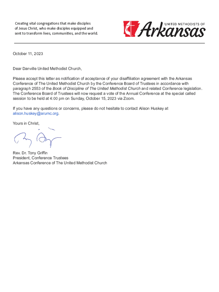 sent to transform lives, communities, and the world.October 11, 2023Dear Danville United Methodist
