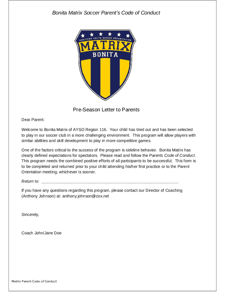 What is Sample-Parent-Welcome-Letter-Soccer.docx Form?