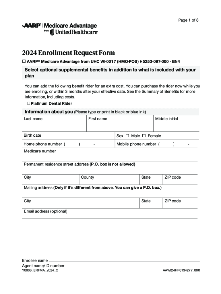 Page 1 of 82024 Enrollment Request Form o AARP Medicare Advantage from UHC WI0017 (HMOPOS) H5253097000 BN4Select optional supplemental benefits in addition to what is included with your plan You can