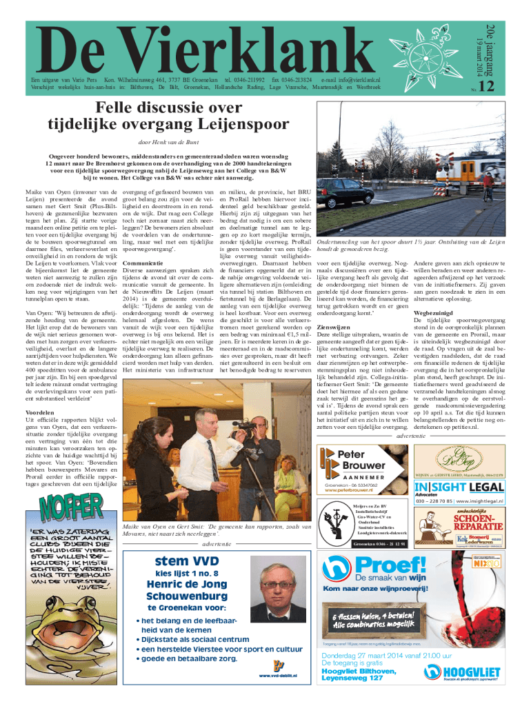 Nr.20e jaargang19 maart 2014Een uitgave van Vario Pers Kon. Wilhelminaweg 461, 3737 BE Groenekan tel. 0346211992 fax 0346213824 email info@vierklank.nl Verschijnt wekelijks huisaanhuis in: Bilthoven,