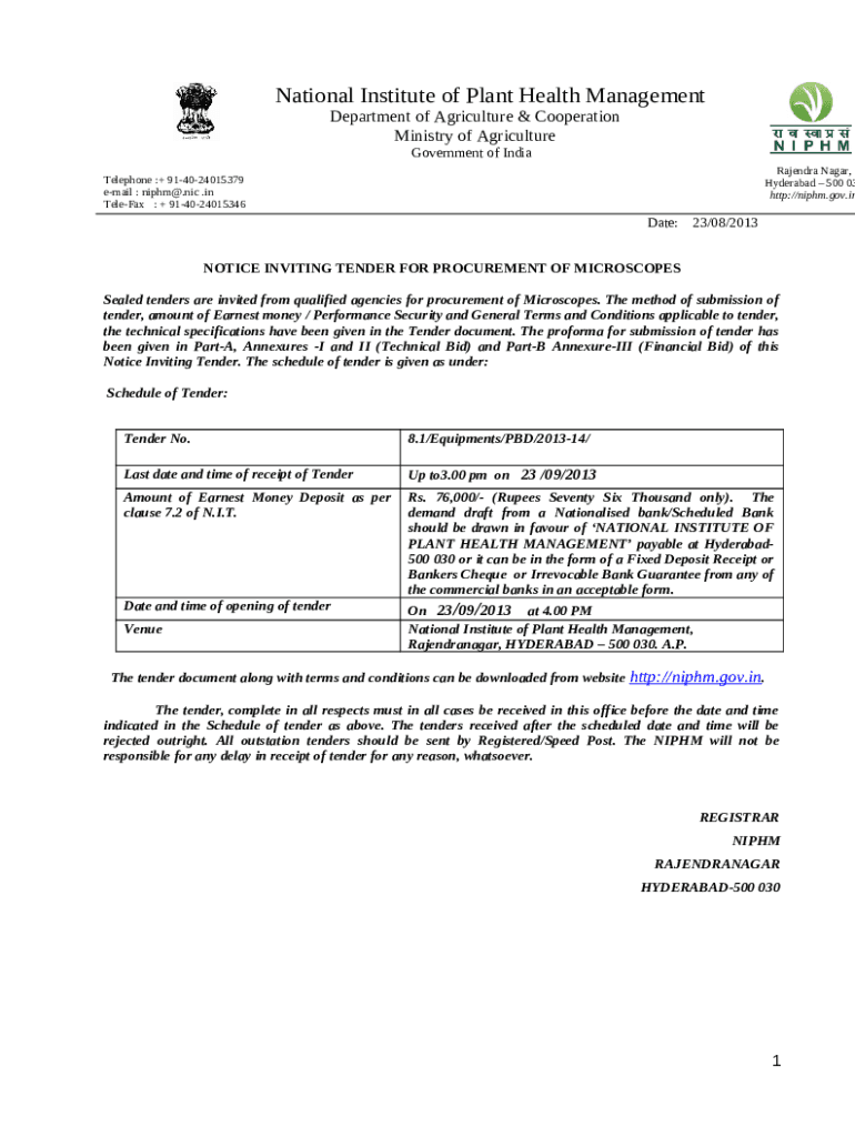 Frequently asked questions about NOTICE INVITING TENDER FOR PROCUREMENT OF MICROSCOPES - niphm gov template