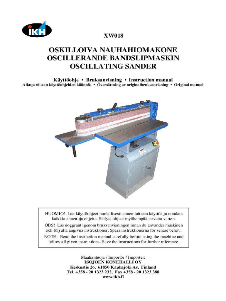 XW018OSKILLOIVA NAUHAHIOMAKONE OSCILLERANDE BANDSLIPMASKIN OSCILLATING SANDER Kyttohje Bruksanvisning Instruction manual Alkuperisten kyttohjeiden knns versttning av originalbruksanvisning Original