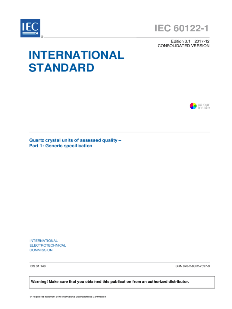 IEC 601221 Edition 3.1 201712 CONSOLIDATED VERSIONINTERNATIONAL STANDARDcolour insideQuartz crystal units of assessed quality Part 1: Generic specificationINTERNATIONAL ELECTROTECHNICAL COMMISSIONICS