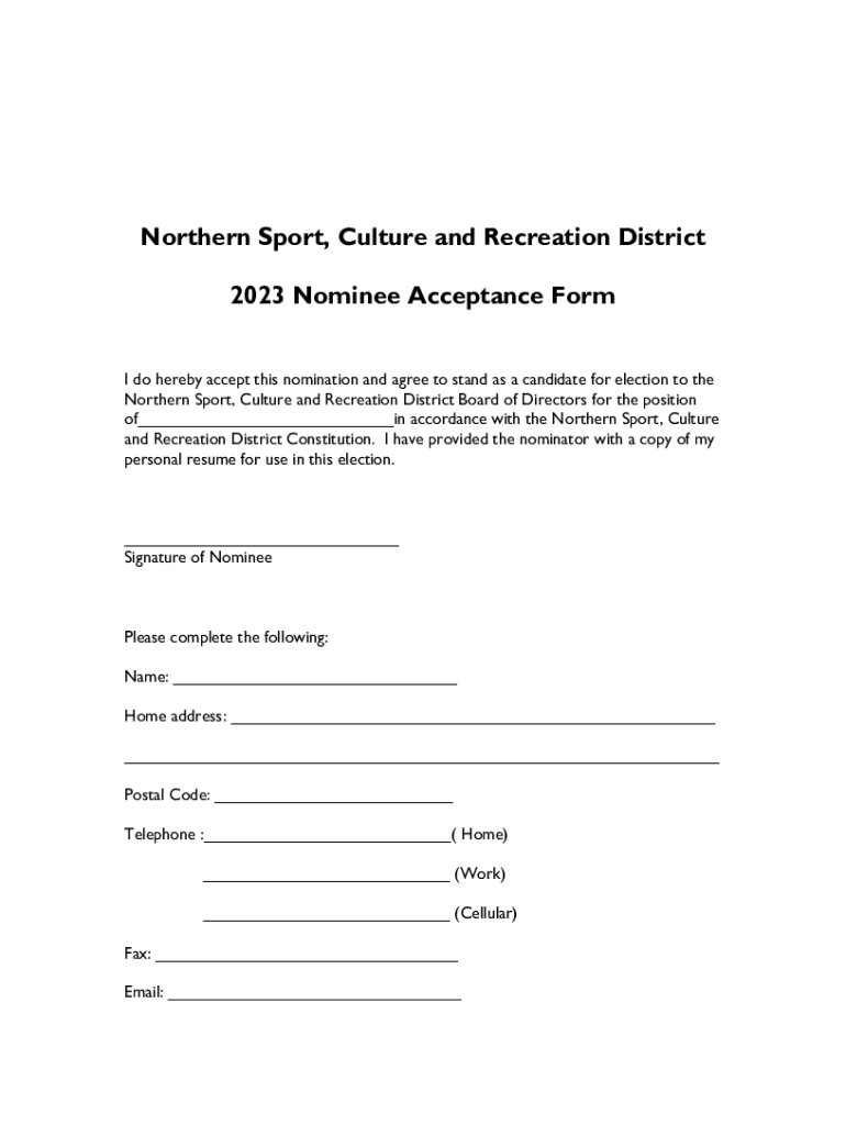 I do hereby accept this nomination and agree to stand as a candidate for election to the
