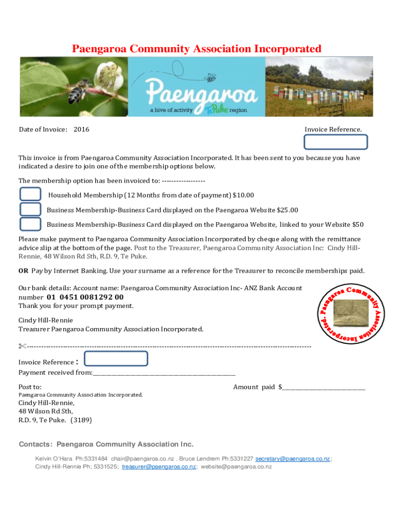 Kangaroo Community Association IncorporatedDate of Invoice: 2016Invoice Reference. This invoice is from Kangaroo Community Association Incorporated. It has been sent to you because you have
