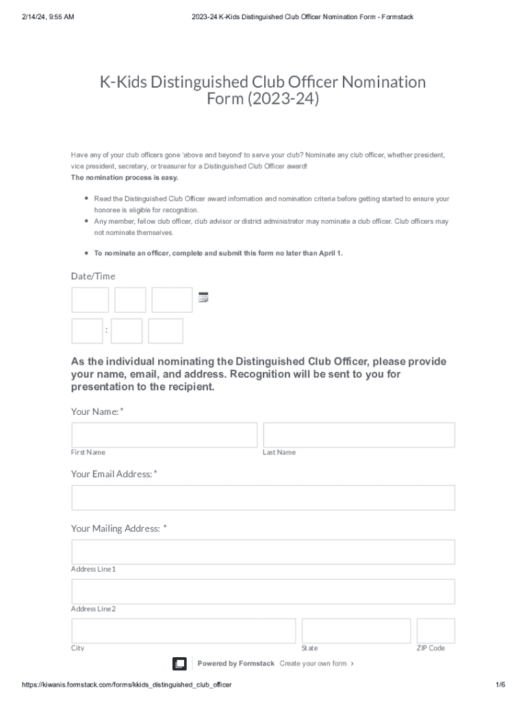 2/14/24, 9:55 AM202324 KKids Distinguished Club Officer Nomination Form FormstackKKids Distinguished Club Officer Nomination Form (202324)Have any of your club officers gone \'above and beyond\' to