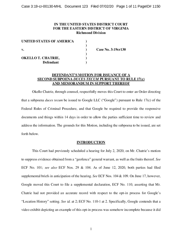 Case 3:19cr00130MHL Document 123 Filed 07/02/20-Page 1 of 11 Paged# 1150IN THE UNITED STATES DISTRICT COURT