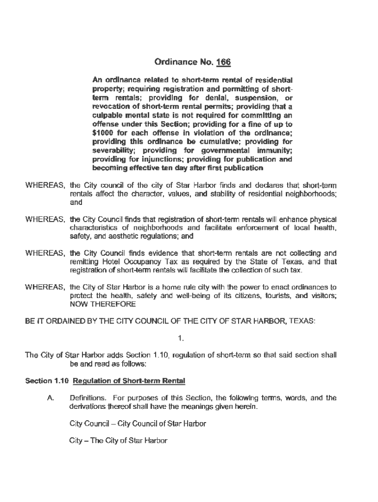 property; requiring registration and permitting of short term rentals; providing for denial, suspension, or