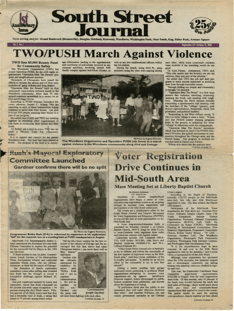 South Street JournalNews serving and for: Grand Boulevard (BronzeviUe), Douglas, Oakland, Kenwood, Woodlawn, Washington Park, Near South, Gap, Fuller Park, Armour Square M 2 No.1September 29 October