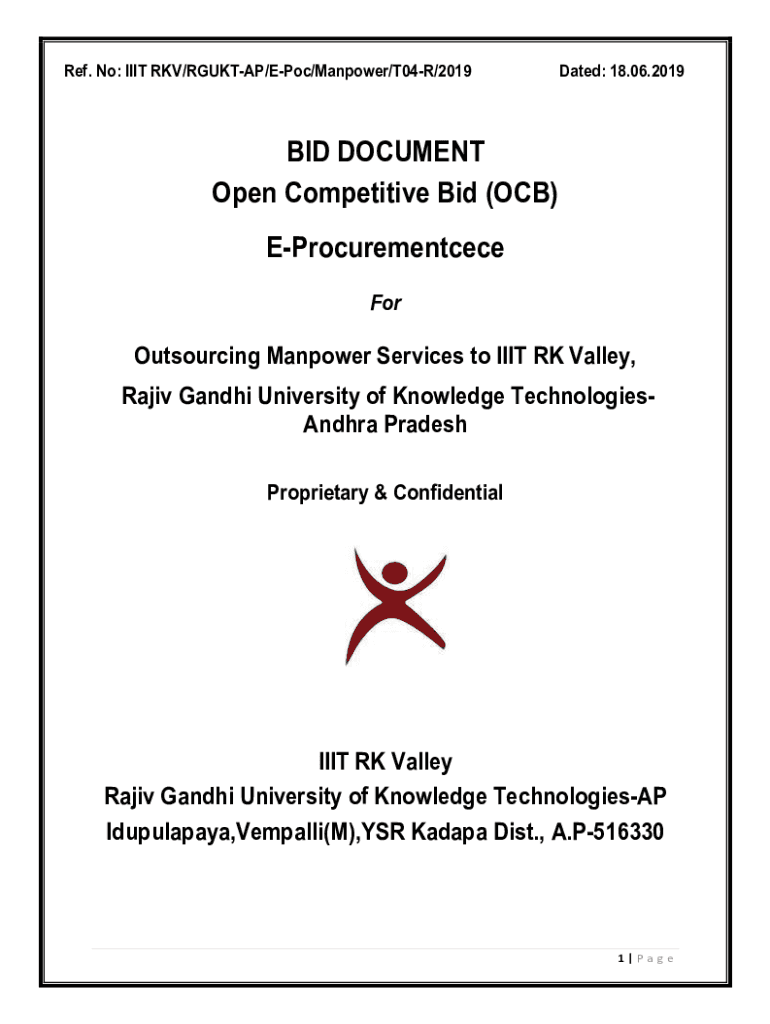 Ref. No: IIIT RKV/RGUKTAP/EPoc/Manpower/T04R/2019Dated: 18.06.2019BID DOCUMENT Open Competitive Bid (OCB) EProcurementcece ForOutsourcing Manpower Services to IIIT RK Valley, Rajiv Gandhi University