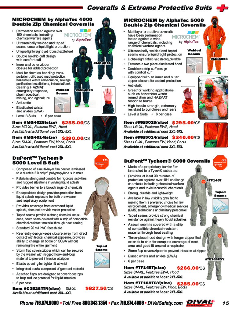 Coveralls & Extreme Protective Suits MICROCHEM by AlphaTec 4000 Double Zip Chemical CoverallsMICROCHEM by AlphaTec 5000 Double Zip Chemical CoverallsPermeation tested against over190 chemicals, includingchemical
