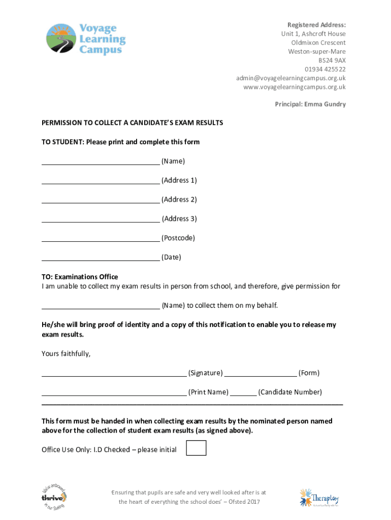 Registered Address: Unit 1, Ashcroft House Oldmixon Crescent WestonsuperMare BS24 9AX 01934 425522 admin@voyagelearningcampus.org.uk www.voyagelearningcampus.org.uk Principal: Emma GundryPERMISSION
