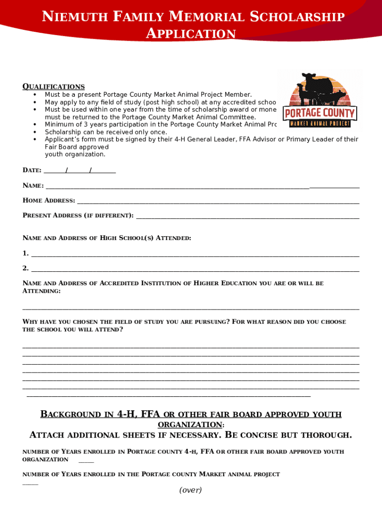 What is Niemuth Family Memorial Scholarship Application Form?