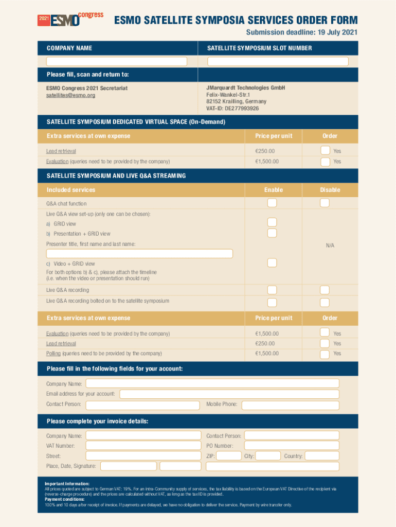 Get the free esmo satellite symposia services order form deadline