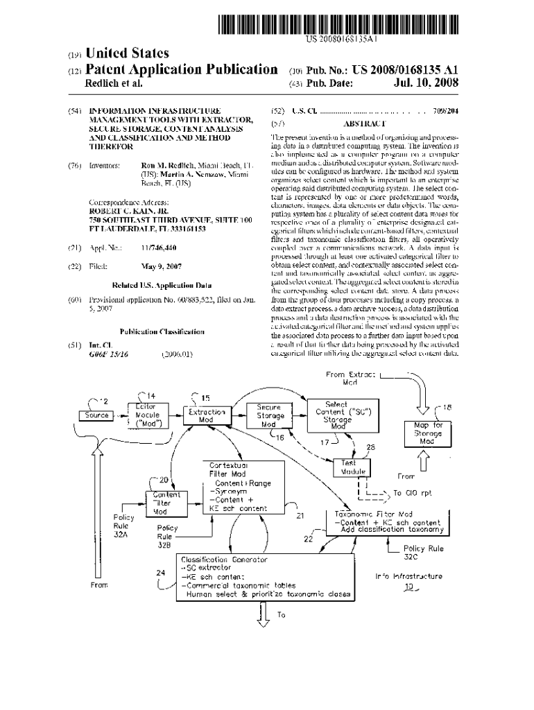 US 2008O168135A1(19) United States(12) Patent Application Publication (10) Pub. No.: US 2008/0168135 A1 (43) Pub. Date:Redlich et al.(54) INFORMATION INFRASTRUCTURE(52) U.S. Cl. ........................................................
