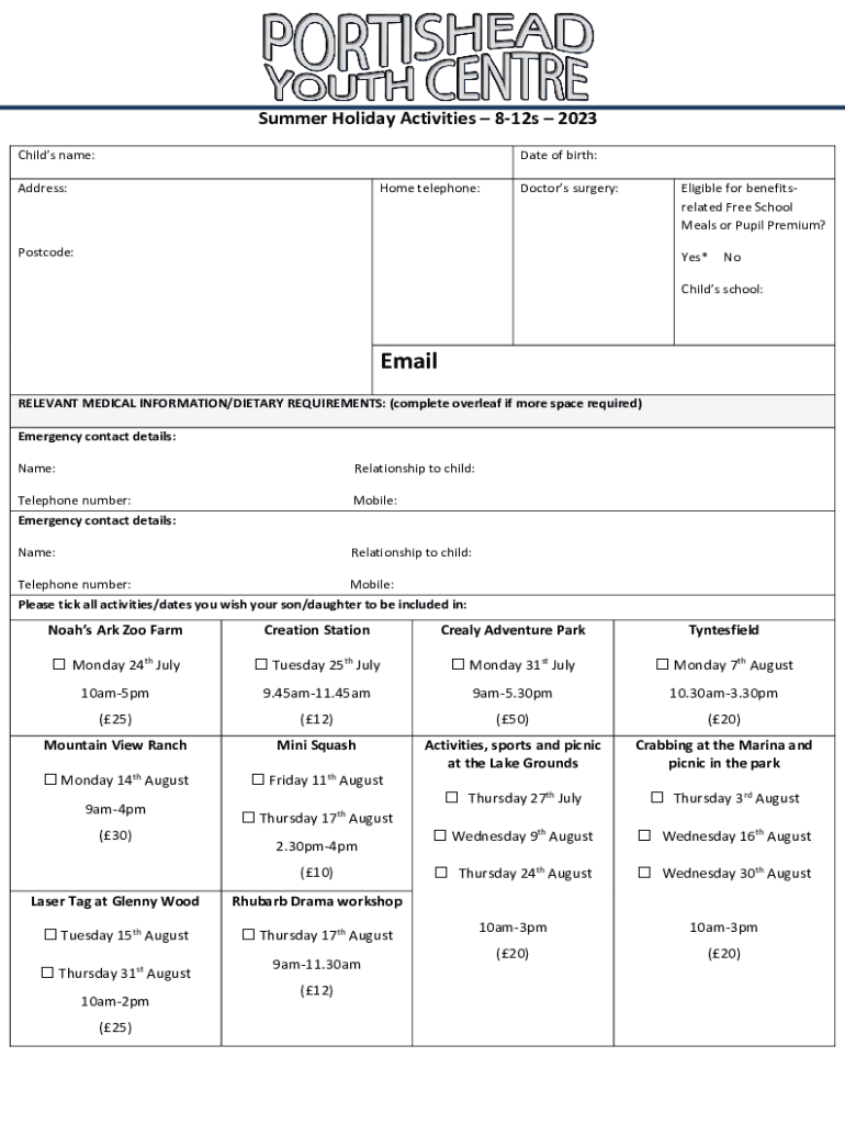 Child's name:Date of birth:Address:Home telephone:Doctors surgery:Eligible for benefits related Free School