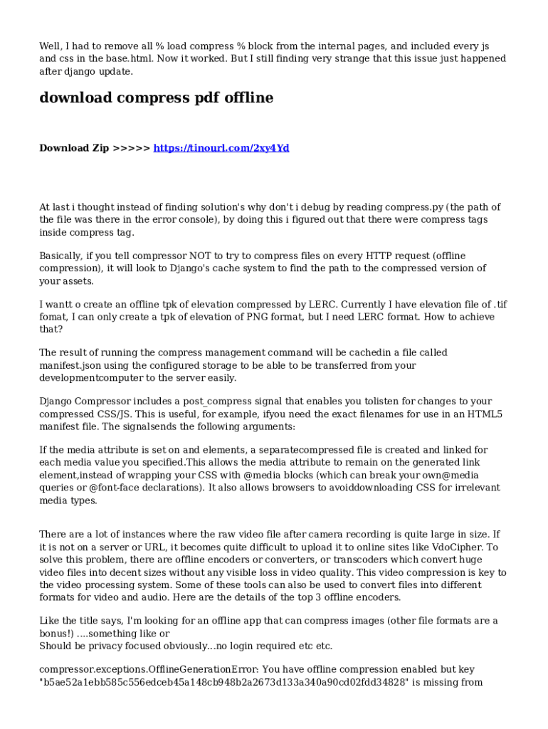 Well, I had to remove all % load compress % block from the internal pages, and included every js and css in the base.html. Now it worked. But I still finding very strange that this issue just happened