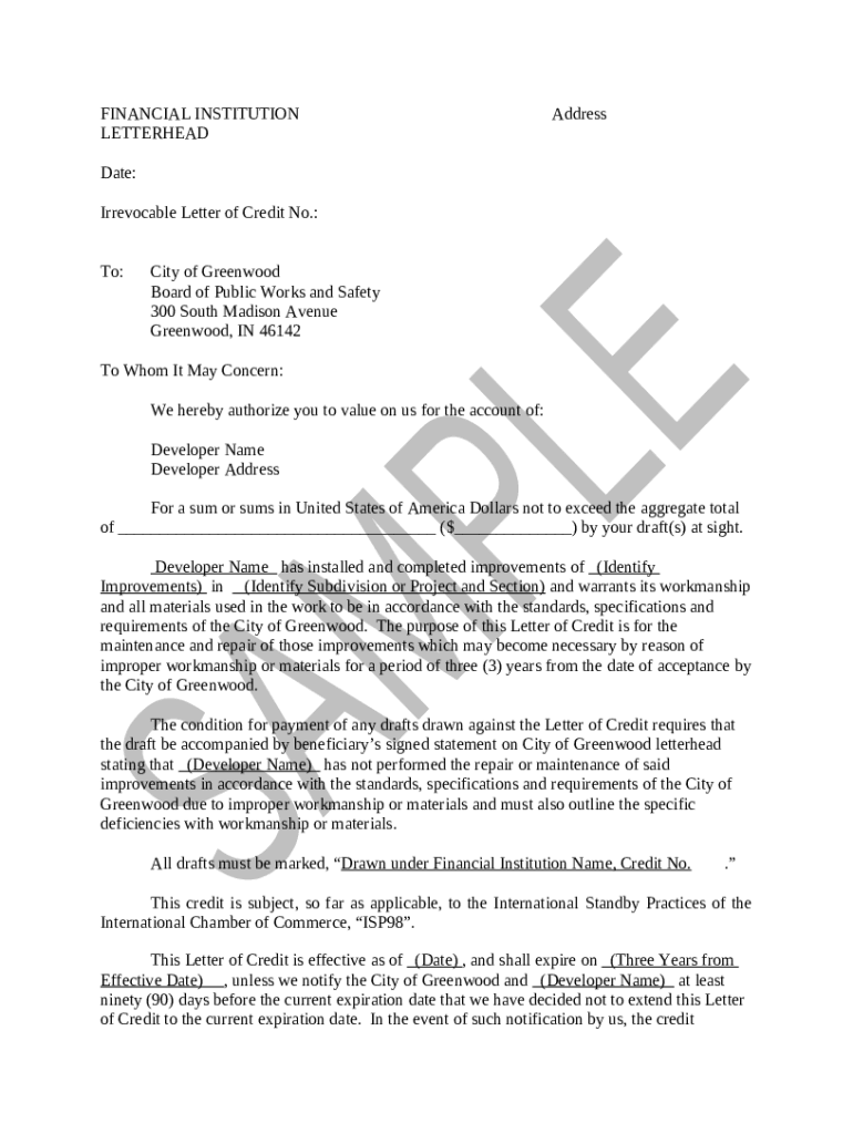What is Letter Of Credit Sample.pdf - LA County Public Works Form?