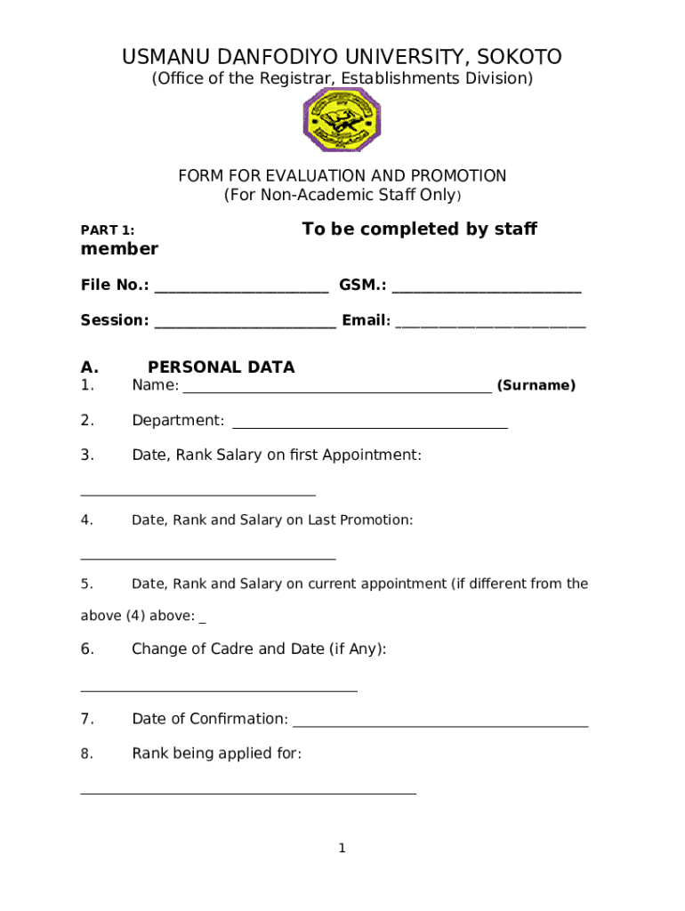 Frequently asked questions about the form Non Academic Staffs Promotion s