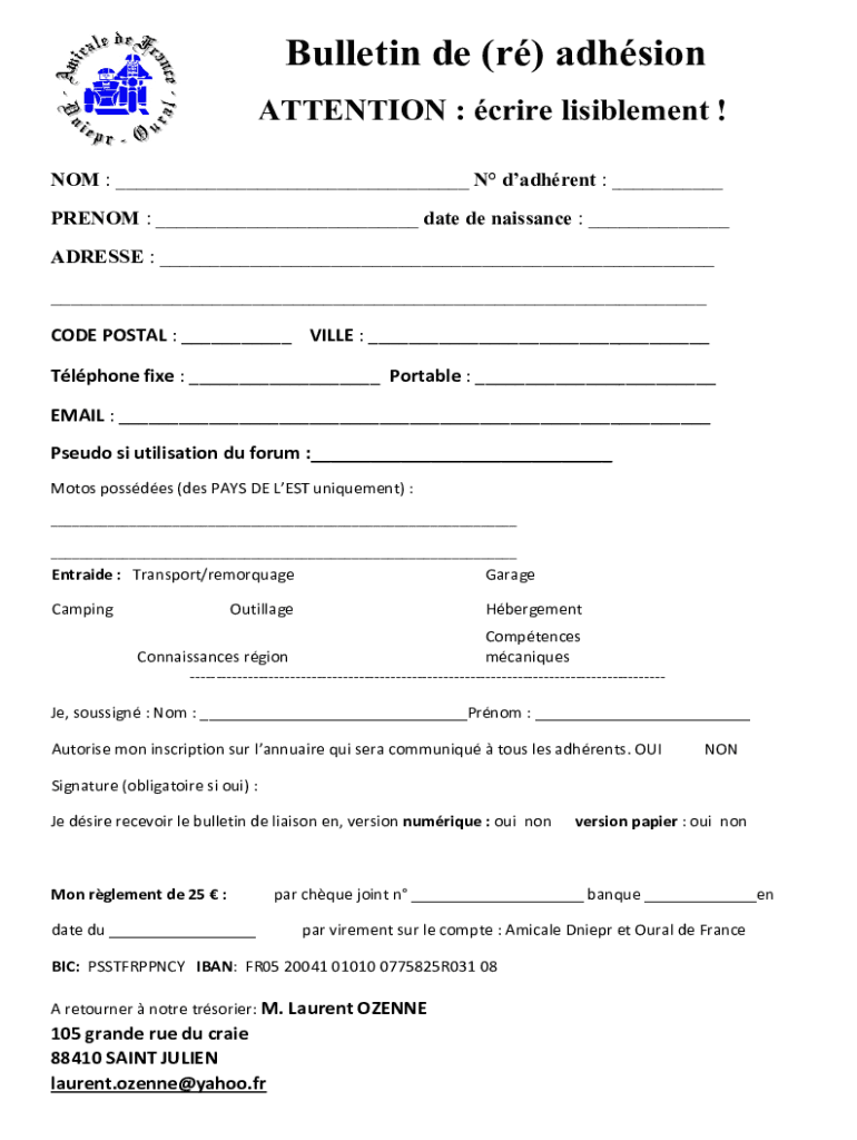 Obtenir le gratuit Bulletin d'adhsionAmicale Dniepr Oural de France
