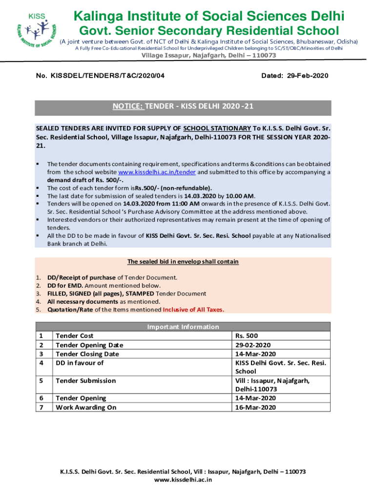 Kalinga Institute of Social Sciences Delhi Govt. Senior Secondary Residential School (A joint venture between Govt. of NCT of Delhi & Kalinga Institute of Social Sciences, Bhubaneswar, Odisha) A Fully