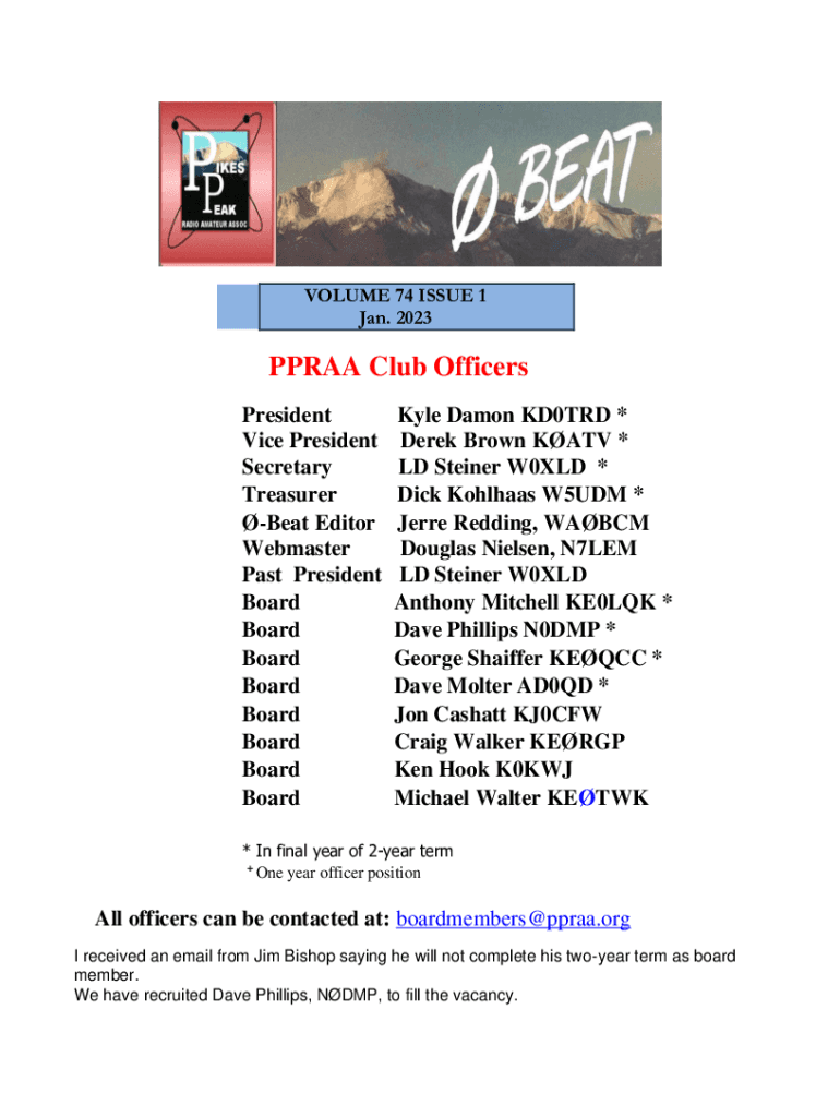 VOLUME 74 ISSUE 1 Jan. 2023PPRAA Club Officers President Vice President Secretary Treasurer Beat Editor Webmaster Past President Board Board Board Board Board Board Board BoardKyle Damon KD0TRD *