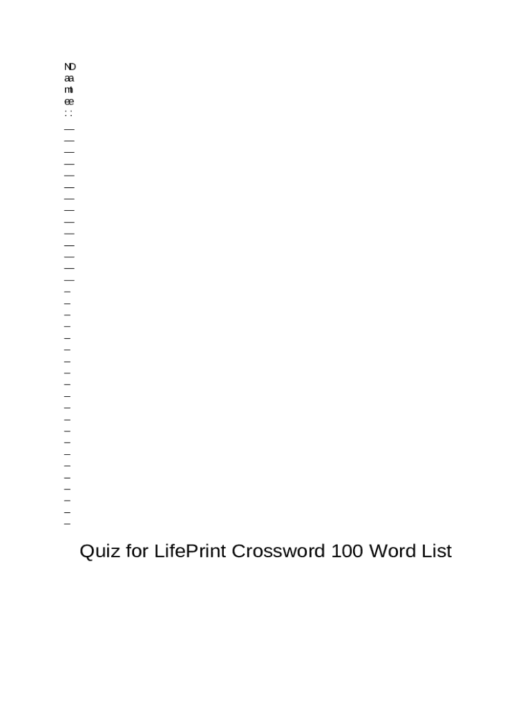 What is Quiz for LifePrint Crossword 100 Word List Form?