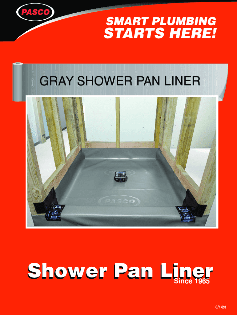 SMART PLUMBINGSTARTS HERE! GRAY SHOWER PAN LINERShower Pan Liner Since 19658/1/23VINYL SHOWER PAN LINERIn 1965 PASCO was the first company to introduce a plastic shower pan liner for ceramic tile