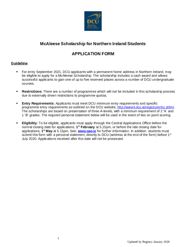 What is Derry student receives McAleese Scholarship to study at ... Form?