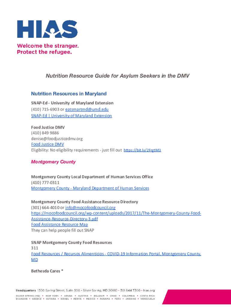 Nutrition Resource Guide for Asylum Seekers in the DMV Nutrition Resources in Maryland SNAPEd University of Maryland Extension (410) 7156903 or eatsmartmd@umd.edu SNAPEd | University of Maryland Extension