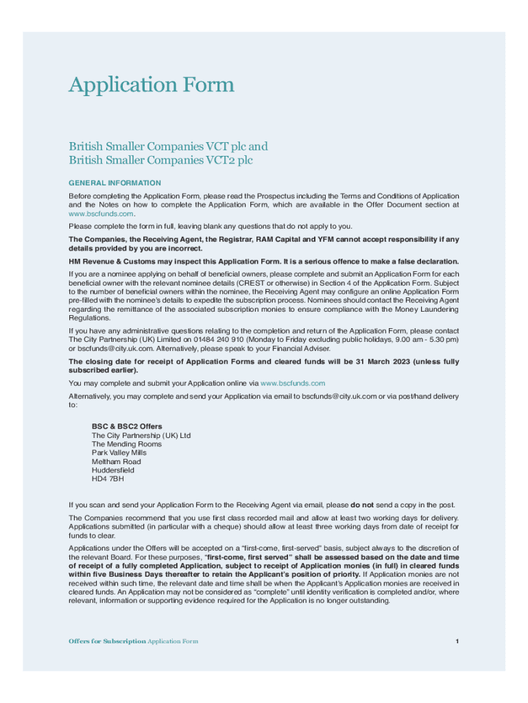 ApplicationForm_4.qxp_Layout 1 24/11/2022 08:53 Page 1Application Form British Smaller Companies VCT plc and British Smaller Companies VCT2 plc GENERAL INFORMATION Before completing the Application