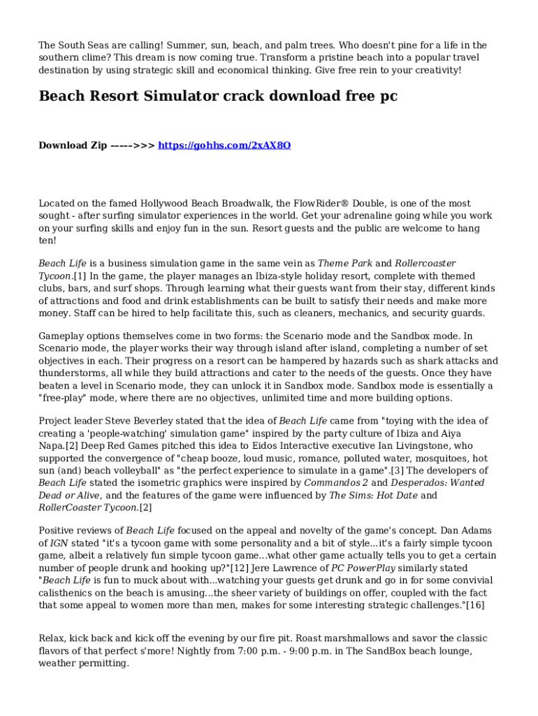 Get, Create, Make and Sign beach resort simulator system