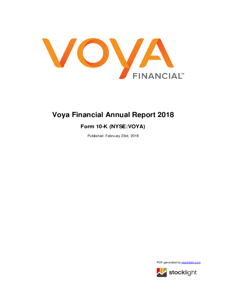 Voya Financial Annual Report 2018 Form 10K (NYSE:VOYA) Published: February 23rd, 2018PDF generated by stocklight.comvoyrfinrgbgrdpos1567a02.jpgUNITED STATES SECURITIES AND EXCHANGE COMMISSION WASHINGTON,