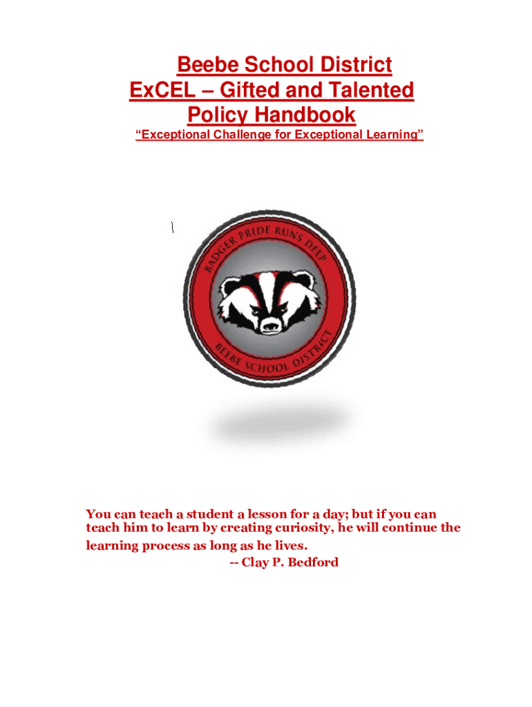 Beebe School District ExCEL Gifted and Talented Policy Handbook Exceptional Challenge for Exceptional LearningYou can teach a student a lesson for a day; but if you can teach him to learn by creating
