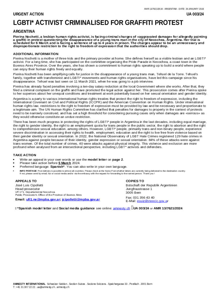 Instructions for the Argentina: Lgbti+ activist criminalised for graffiti protest form