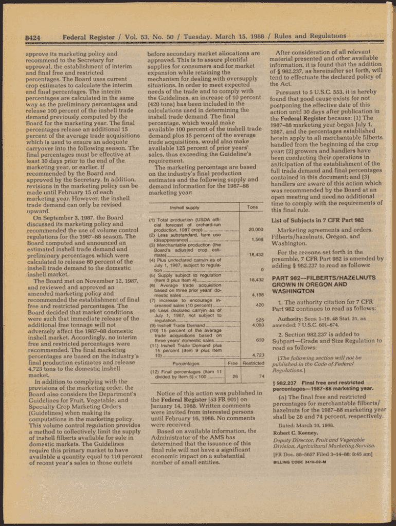 8424Federal Register / Vol. 53, No. 50 / Tuesday, M arch 15, 1988 / Rules and Regulationsapprove its marketing policy and recommend to the Secretary for approval, the establishment of interim and