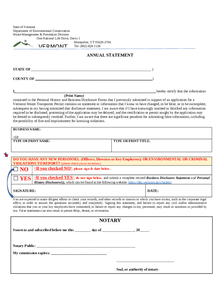 What is NO - Vermont Department of Environmental Conservation Form?