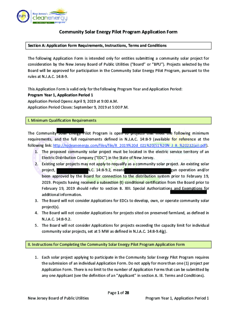 Community Solar Energy Pilot Program Application Form Section A: Application Form Requirements, Instructions, Terms and Conditions The following Application Form is intended only for entities submitting