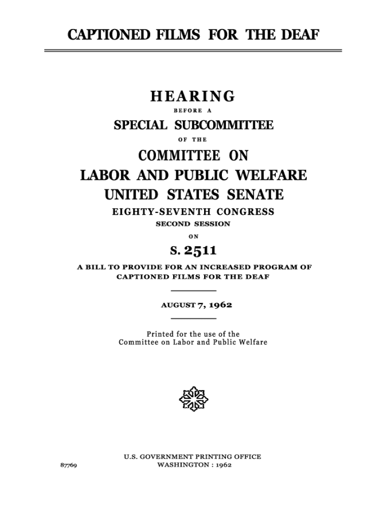 . i. TUESDAY, AUGUST 7, 1962 SENAT\" SRECIAL $.UllCOMMI\'M\'EE OF THE _ ,. :,,\'_U.S.T\" . . . COMMITTEE ON LABOR :AND PUBLIC WElJFARE,.Washington, D,C.The special subcommitte\'e met) pursuant tornotice;at