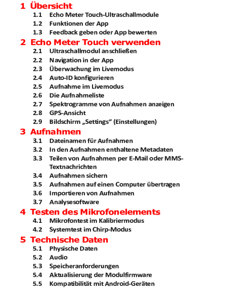 Holen Sie sich kostenlos Ausfllbar Online 1 Overview 2 Using Echo Meter Touch 3 ...