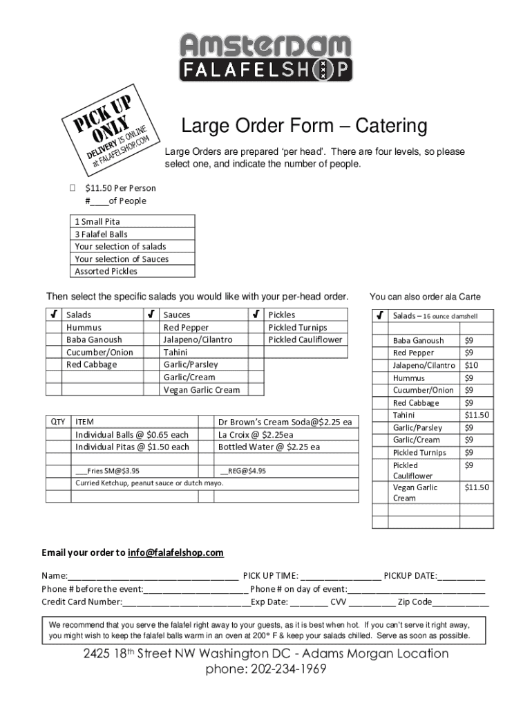 Large Order Form Catering