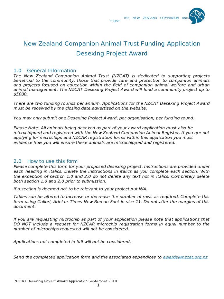 Template New Zealand Companion Animal Trust Funding Application instructions